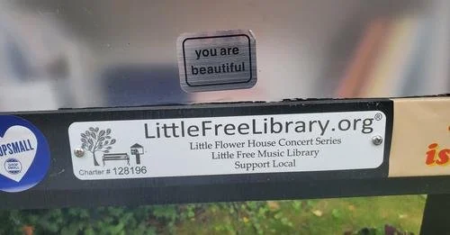 The Little Flower House Concert Series extends a special THANK YOU to local theater company, Claude McNeal Productions. They donated funds to get this Little Free Music Library created and up and running.