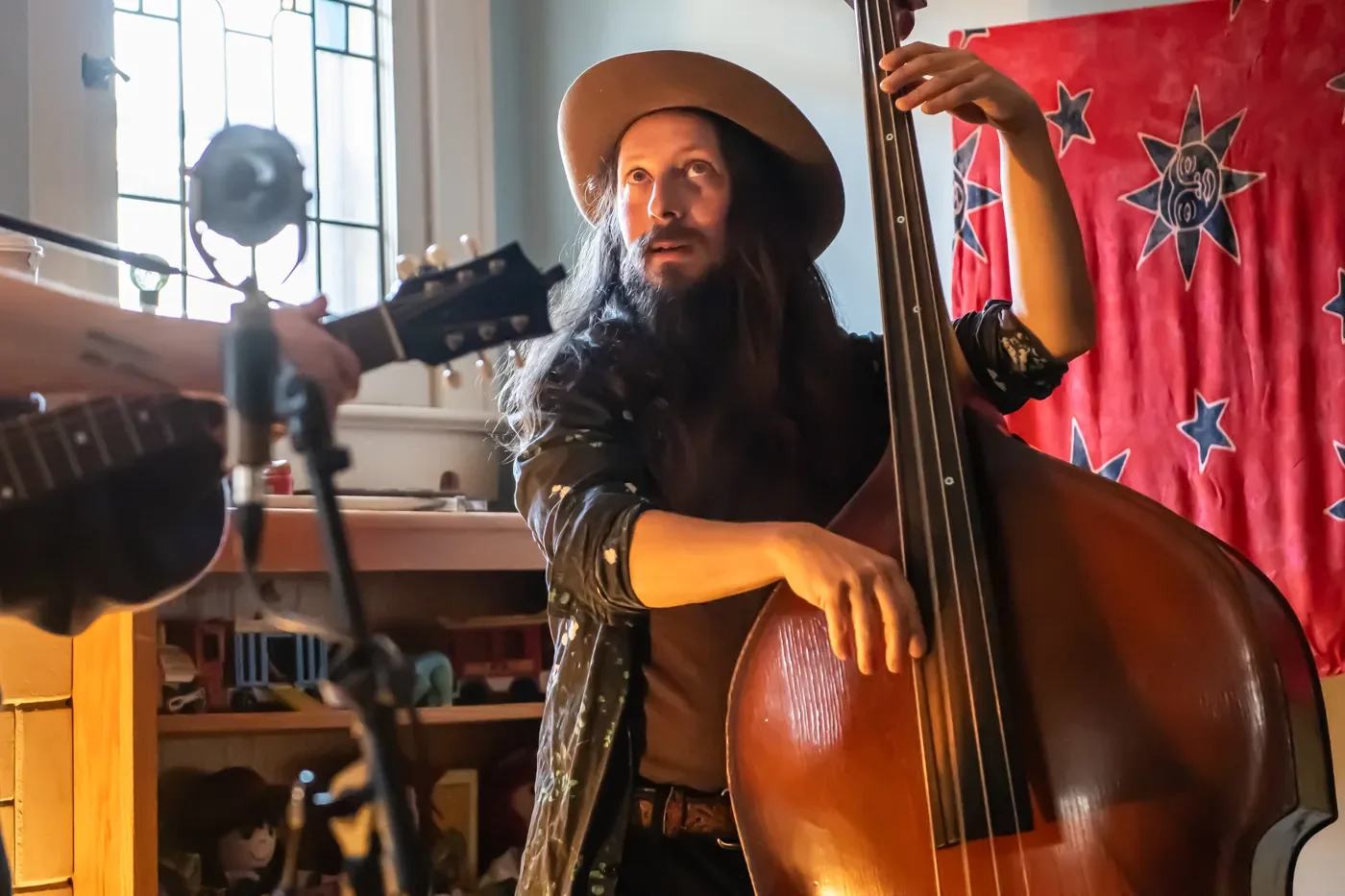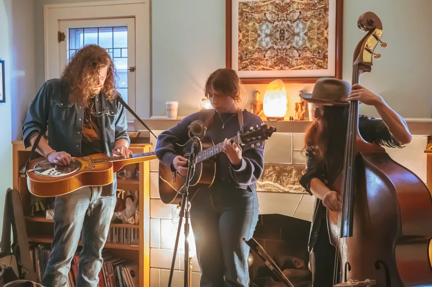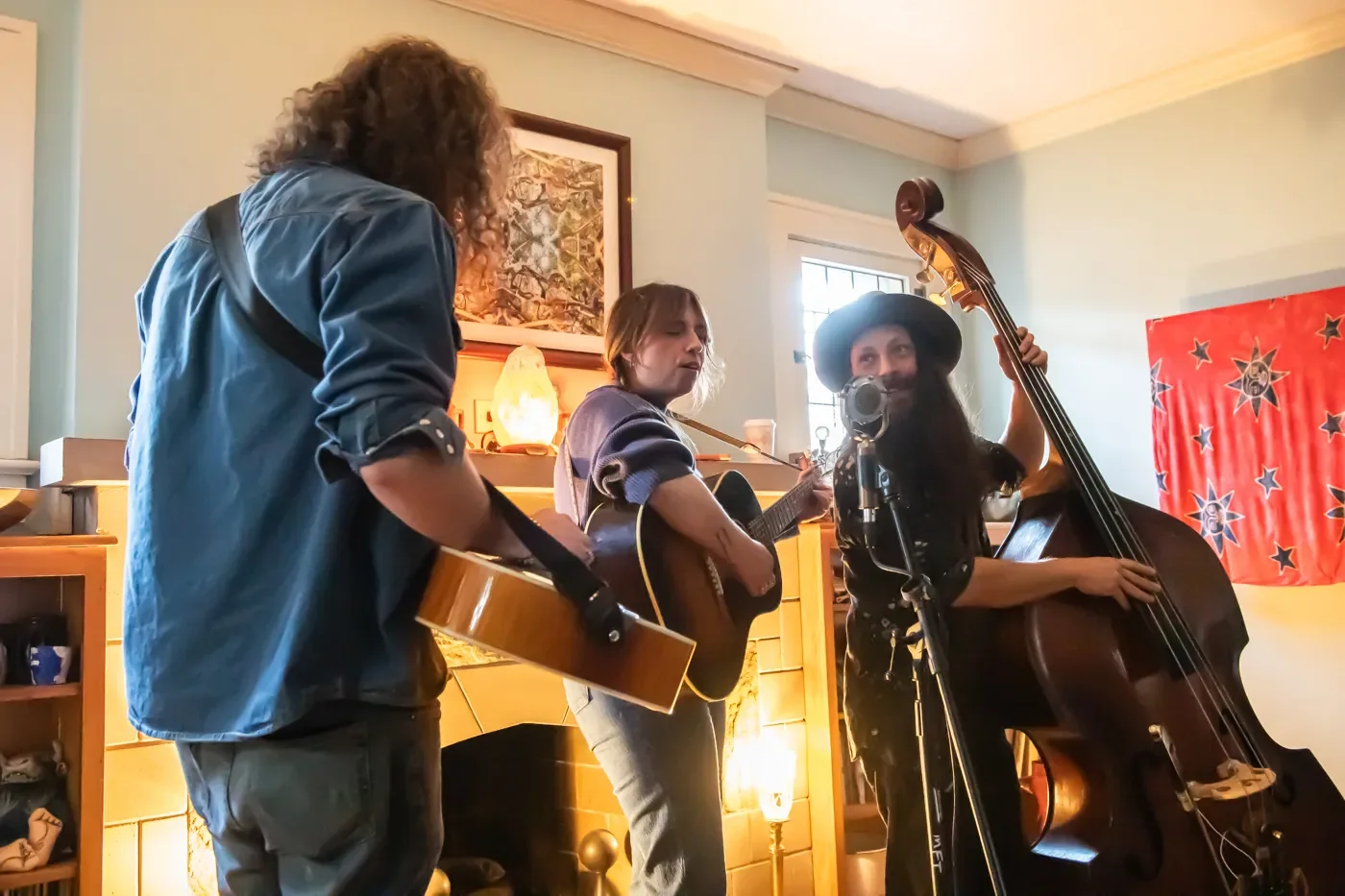 Headlining the night was Carrie Sue & The Wood Burners, a soulful trio from Urbana, Illinois. Blending folk, bluegrass, country, and Americana, the group delivered a rich tapestry of harmonies and heartfelt songwriting that resonated deeply with the audience. Their performance was a seamless fusion of old soul and modern spirit — the kind of music that lingers long after the final note.
