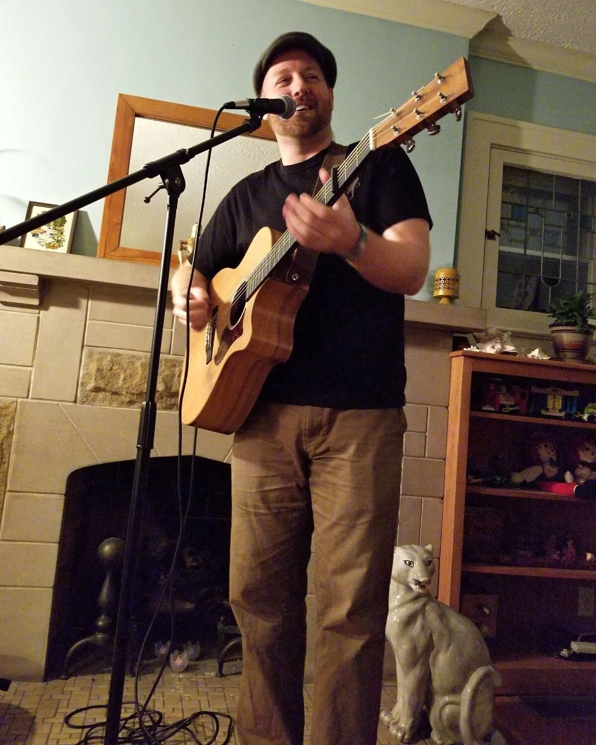 The Little Flower House Concert Series was pleased to welcome Joel Curtis for our 7th concert. Joel is a seeker of good things in life and he’s a great performer. He has been into music all his life and listeners at this house concert really enjoyed his tunes. Most likely didn’t know that Joel spent a lot of his life skateboarding and has a past career as a skateboarder!