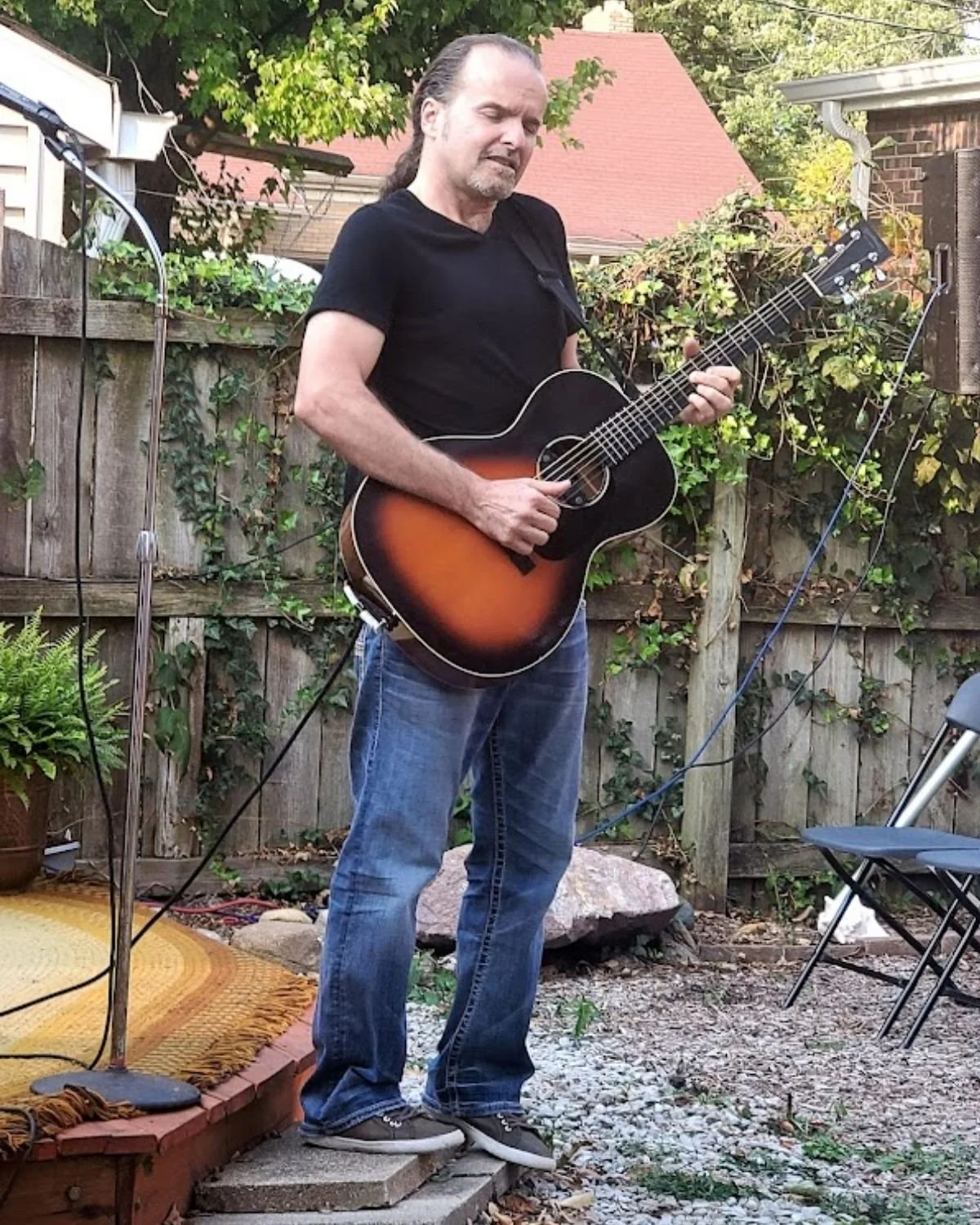 The backyard space was full for the house concert that featured local artist, Michael Kelsey. He has a significant following already but the Little Flower friends and neighbors were excited to hear him perform in an intimate setting. With a sound all his own, Michael’s unique sound, percussive playing, and mixing of genres was so fun to see created in front of you. He has his own way of playing the guitar, looping over his sounds, and building unique compositions and putting his lyrics to it. There were some several one of a kind moments at this house concert that were memorable. Michael Kelsey really knows how to get his audience involved in the music.
